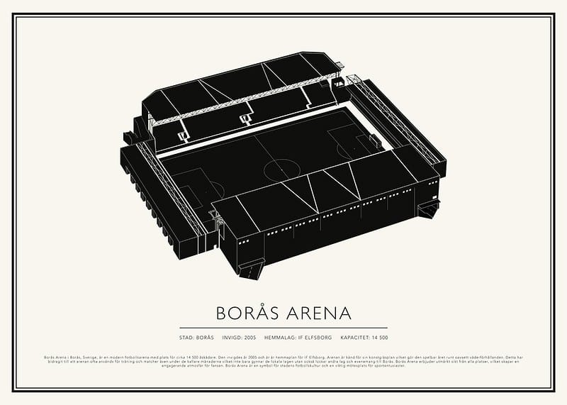 Borås Arena i Borås, Sverige, är en modern fotbollsarena med plats för cirka 14 500 åskådare. Den invigdes år 2005 och är är hemmaplan för IF Elfsborg. Arenan är känd för sin konstgräsplan vilket gör den spelbar året runt oavsett väderförhållanden. Detta har bidragit till att arenan ofta används för träning och matcher även under de kallare månaderna vilket inte bara gynnar de lokala lagen utan också lockar andra lag och evenemang till Borås. Borås Arena erbjuder utmärkt sikt från alla platser, vilket skapar en engagerande atmosfär för fansen. Borås Arena är en symbol för stadens fotbollskultur och en viktig mötesplats för sportentusiaster.