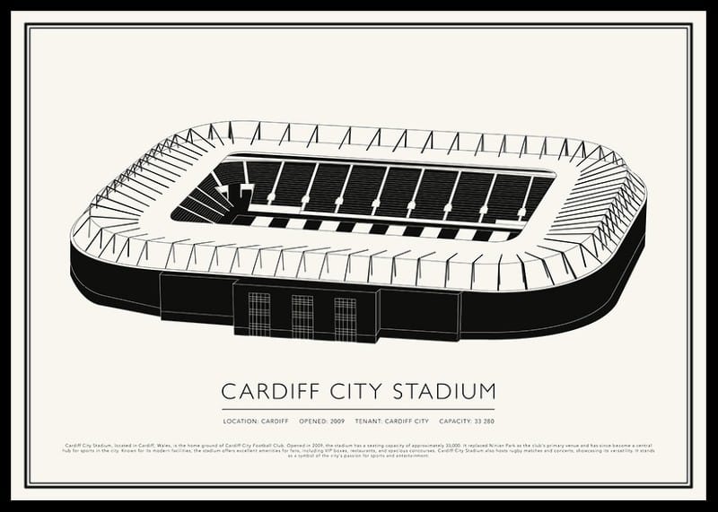 Cardiff City Stadium, som ligger i Cardiff, Wales, är Cardiff City Football Clubs hemmaplan. Stadion öppnade 2009 och har en kapacitet på cirka 33 000 sittplatser. Det ersatte Ninian Park som klubbens primära plats och har sedan dess blivit ett centralt nav för sport i staden. Stadion är känd för sina moderna faciliteter och erbjuder utmärkta bekvämligheter för fans, inklusive VIP-boxar, restauranger och rymliga banor. Cardiff City Stadium är också värd för rugbymatcher och konserter, vilket visar upp dess mångsidighet. Det står som en symbol för stadens passion för sport och underhållning.