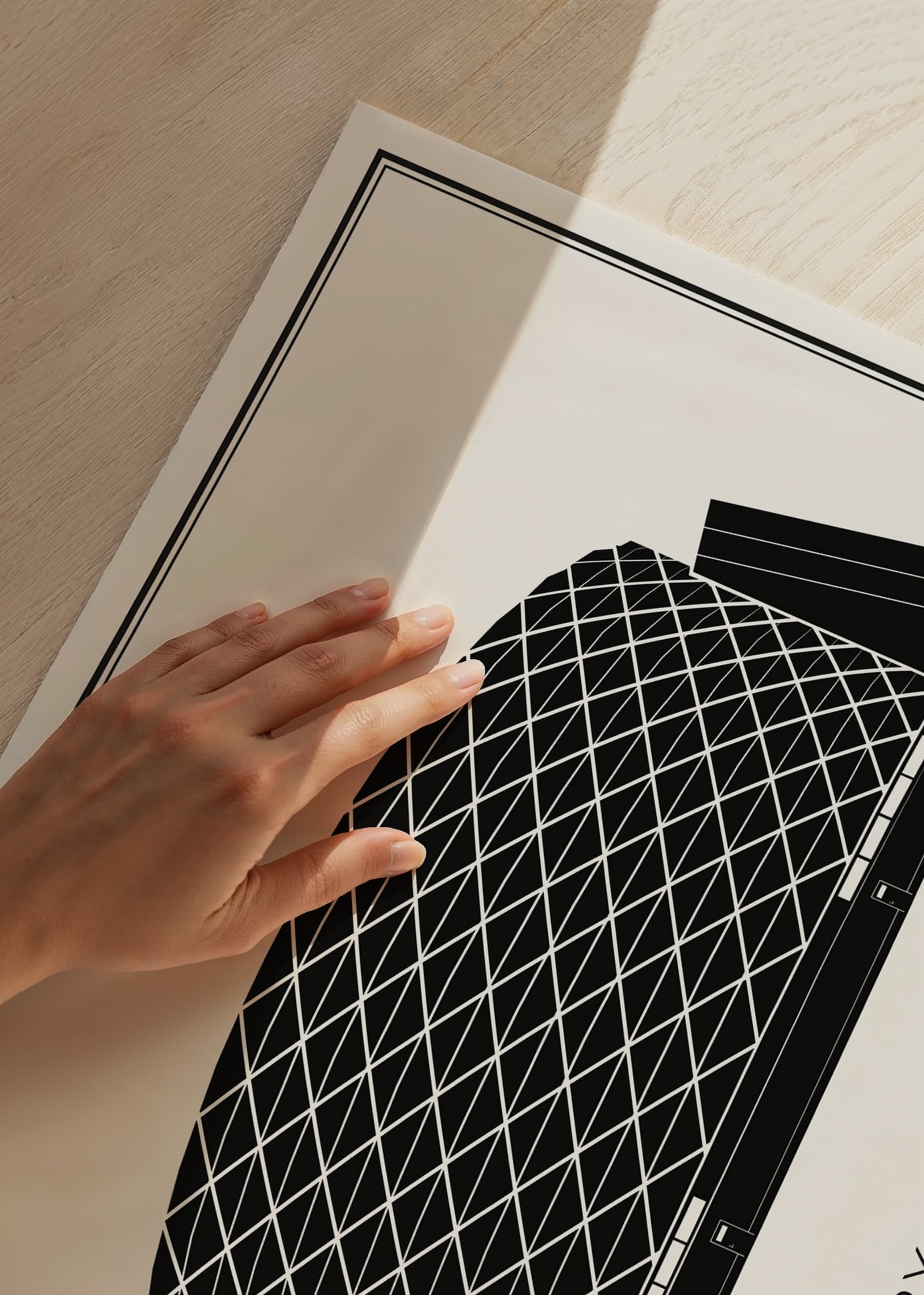 Vi trycker våra posters på 200 grams matt papper av högsta kvalitet från det franska pappersbruket Clairefontaine. Pappret är miljöcertifierat FSC och produktionen Svanen/EU Ecolabel-märkt.