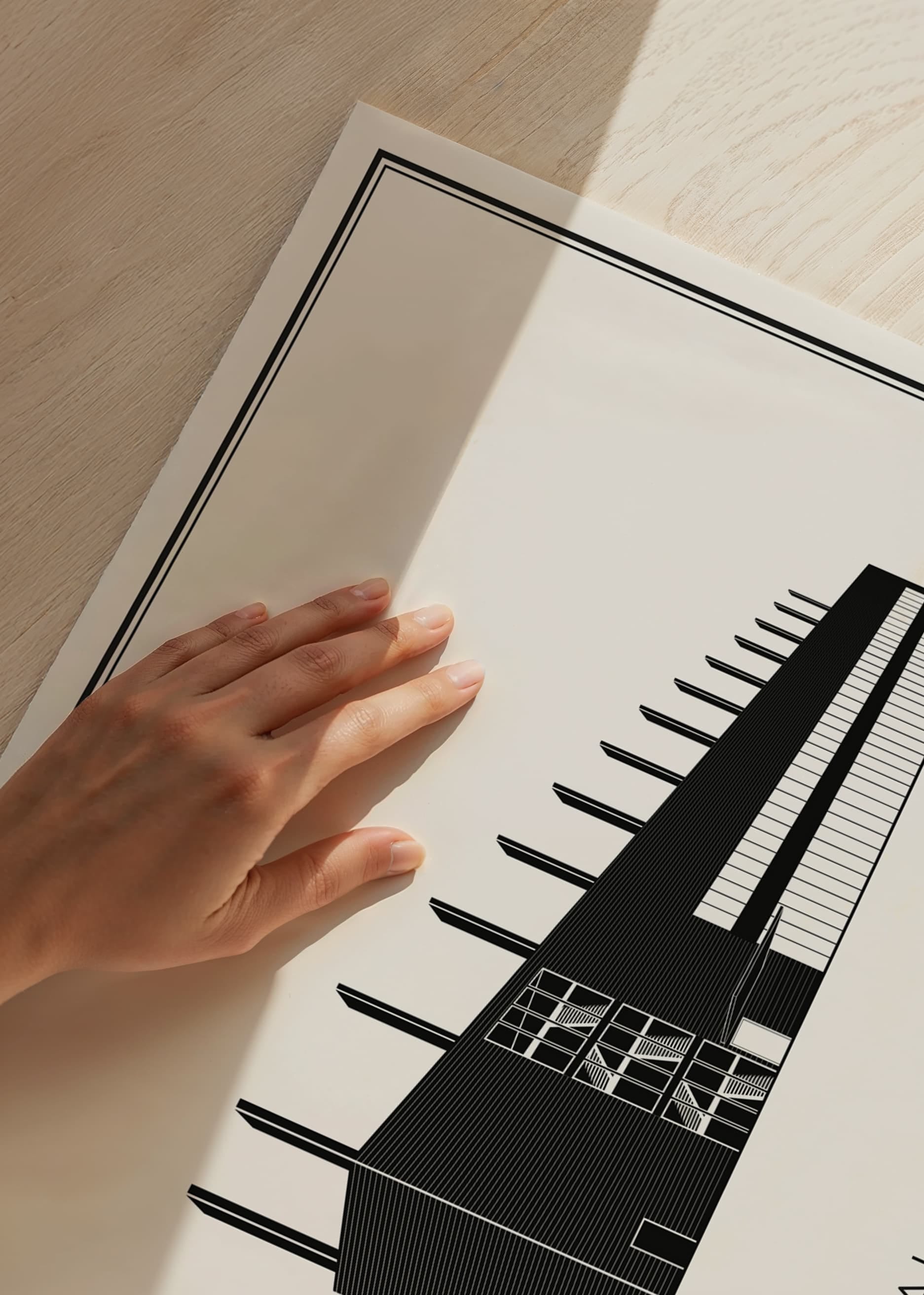 Vi trycker våra posters på 200 grams matt papper av högsta kvalitet från det franska pappersbruket Clairefontaine. Pappret är miljöcertifierat FSC och produktionen Svanen/EU Ecolabel-märkt.