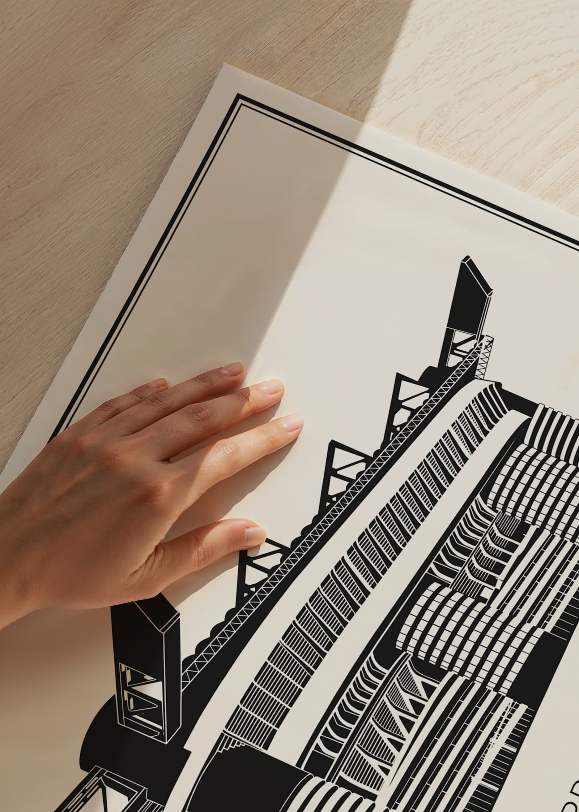 Vi trycker våra posters på 200 grams matt papper av högsta kvalitet från det franska pappersbruket Clairefontaine. Pappret är miljöcertifierat FSC och produktionen Svanen/EU Ecolabel-märkt.