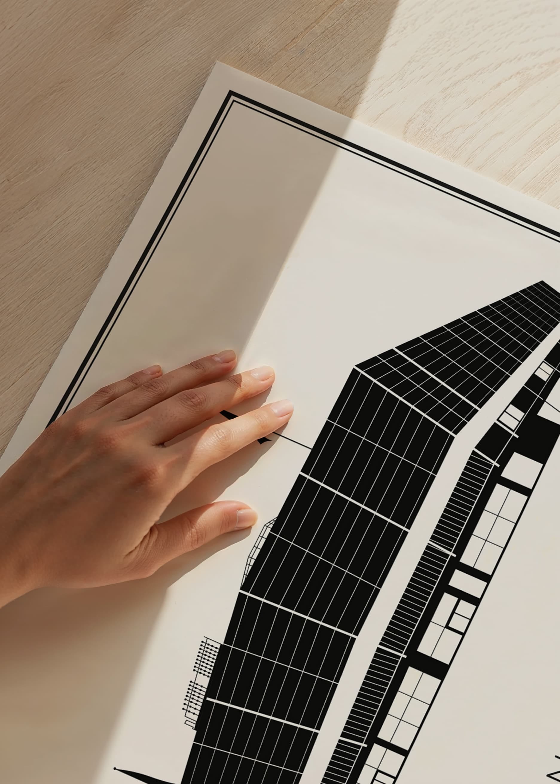 Vi trycker våra posters på 200 grams matt papper av högsta kvalitet från det franska pappersbruket Clairefontaine. Pappret är miljöcertifierat FSC och produktionen Svanen/EU Ecolabel-märkt.