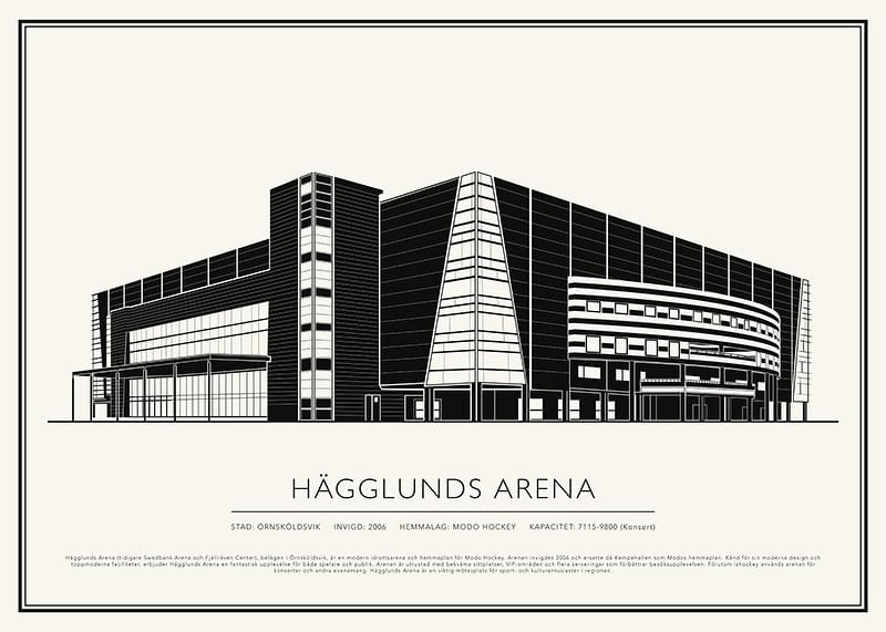 Hägglunds Arena (tidigare Swedbank Arena och Fjällräven Center), belägen i Örnsköldsvik, är en modern idrottsarena och hemmaplan för Modo Hockey. Arenan invigdes 2006 och ersatte då Kempehallen som Modos hemmaplan. Känd för sin moderna design och toppmoderna faciliteter, erbjuder Hägglunds Arena en fantastisk upplevelse för både spelare och publik. Arenan är utrustad med bekväma sittplatser, VIP-områden och flera serveringar som förbättrar besöksupplevelsen. Förutom ishockey används arenan för konserter och andra evenemang. Hägglunds Arena är en viktig mötesplats för sport- och kulturentusiaster i regionen.