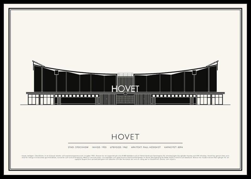 Hovet, belägen i Stockholm, är en klassisk idrotts- och evenemangsarena som invigdes 1955. Arenan har en kapacitet på cirka 8 000 åskådare och är främst känd som hemmaplan för ishockeylagen Djurgården Hockey och AIK Ishockey. Hovet har genom åren varit värd för många minnesvärda sporthändelser, konserter och kulturevenemang. Med sin centrala plats i huvudstaden och goda kommunikationsmöjligheter är Hovet lättillgänglig för både lokala invånare och besökare. Arenan har moderniserats flera gånger för att uppfylla dagens krav på bekvämlighet och säkerhet och den fortsätter att vara en viktig del av Stockholms idrotts- och nöjesliv.