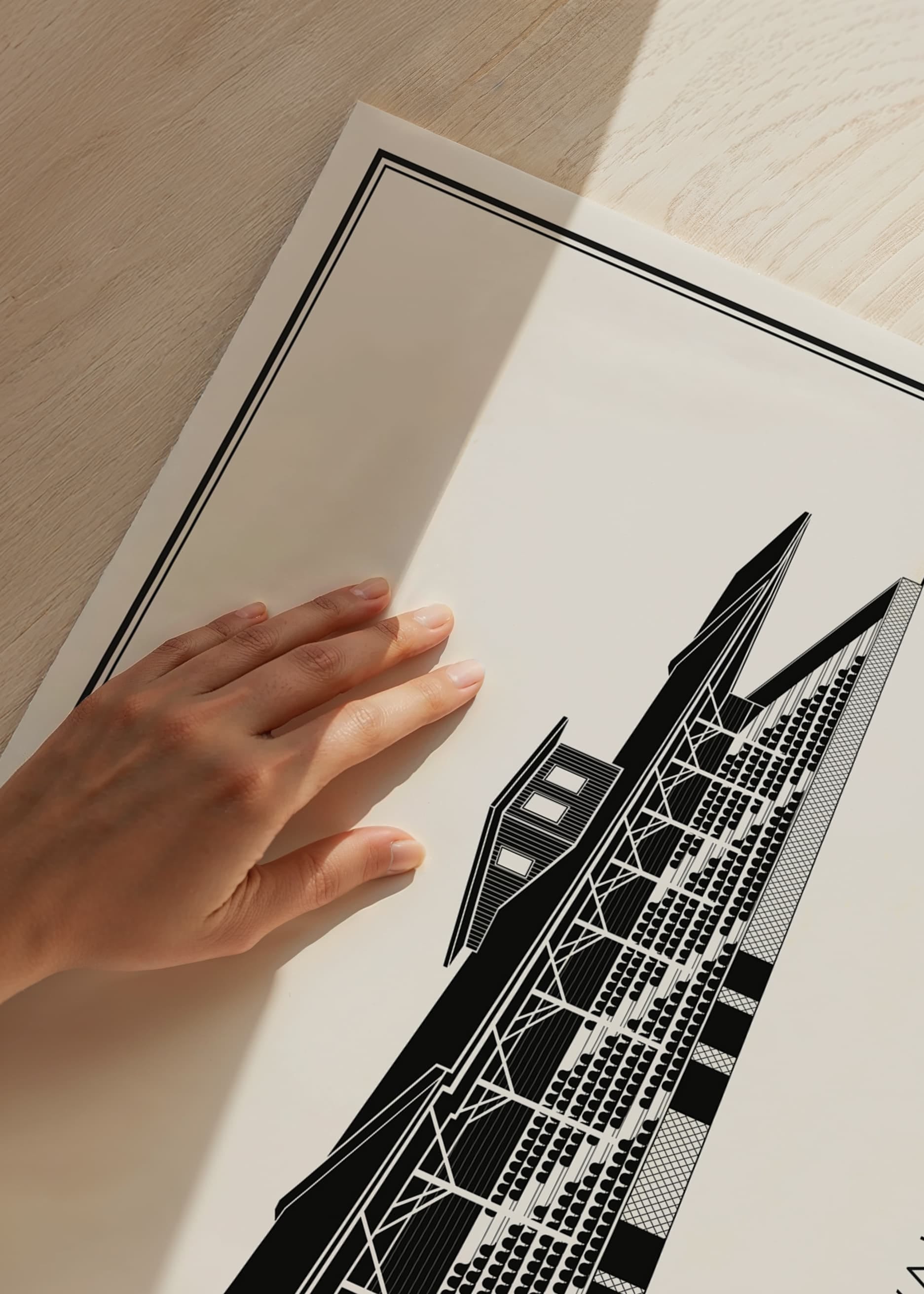 Vi trycker våra posters på 200 grams matt papper av högsta kvalitet från det franska pappersbruket Clairefontaine. Pappret är miljöcertifierat FSC och produktionen Svanen/EU Ecolabel-märkt.