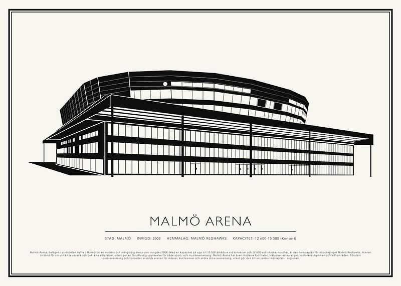 Malmö Arena, belägen i stadsdelen Hyllie i Malmö, är en modern och mångsidig arena som invigdes 2008. Med en kapacitet på upp till 15 500 åskådare vid konserter och 12 600 vid ishockeymatcher, är den hemmaplan för ishockeylaget Malmö Redhawks. Arenan är känd för sin utmärkta akustik och bekväma sittplatser, vilket ger en förstklassig upplevelse för både sport- och musikevenemang. Malmö Arena har även moderna faciliteter, inklusive restauranger, konferensutrymmen och VIP-områden. Förutom sportevenemang och konserter används arenan för mässor, konferenser och andra stora evenemang, vilket gör den till en central mötesplats i regionen.