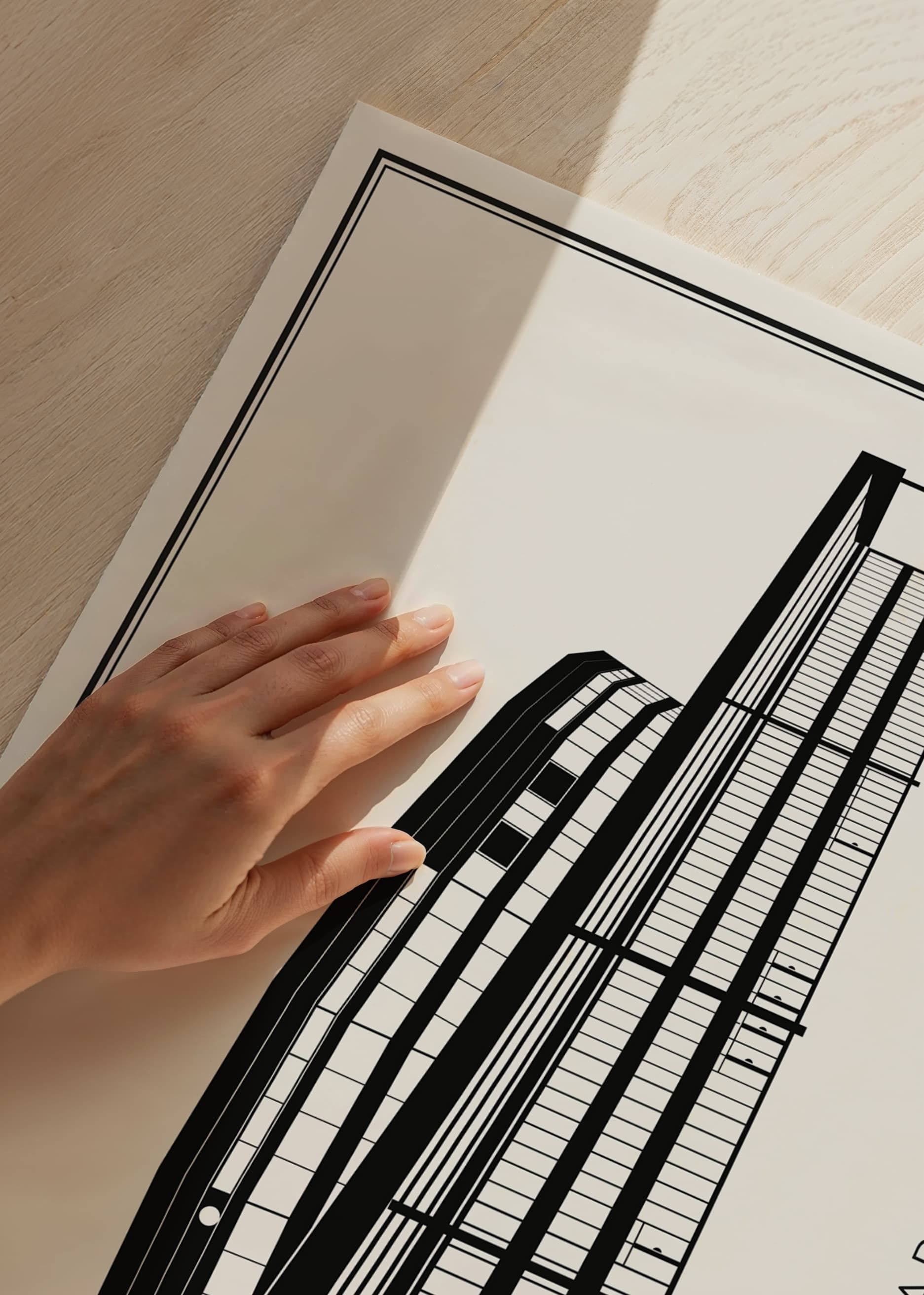 Vi trycker våra posters på 200 grams matt papper av högsta kvalitet från det franska pappersbruket Clairefontaine. Pappret är miljöcertifierat FSC och produktionen Svanen/EU Ecolabel-märkt.
