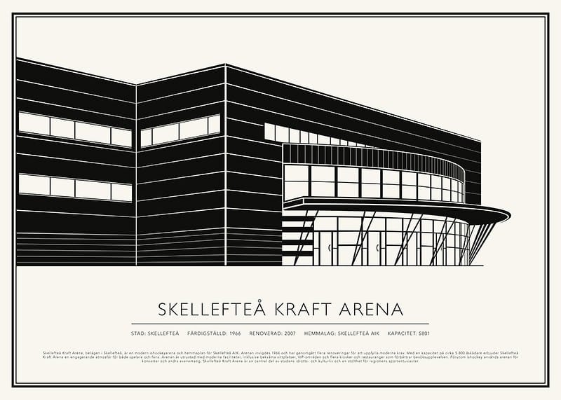 Skellefteå Kraft Arena, belägen i Skellefteå, är en modern ishockeyarena och hemmaplan för Skellefteå AIK. Arenan invigdes 1966 och har genomgått flera renoveringar för att uppfylla moderna krav. Med en kapacitet på cirka 5 800 åskådare erbjuder Skellefteå Kraft Arena en engagerande atmosfär för både spelare och fans. Arenan är utrustad med moderna faciliteter, inklusive bekväma sittplatser, VIP-områden och flera kiosker och restauranger som förbättrar besöksupplevelsen. Förutom ishockey används arenan för konserter och andra evenemang. Skellefteå Kraft Arena är en central del av stadens idrotts- och kulturliv och en stolthet för regionens sportentusiaster.