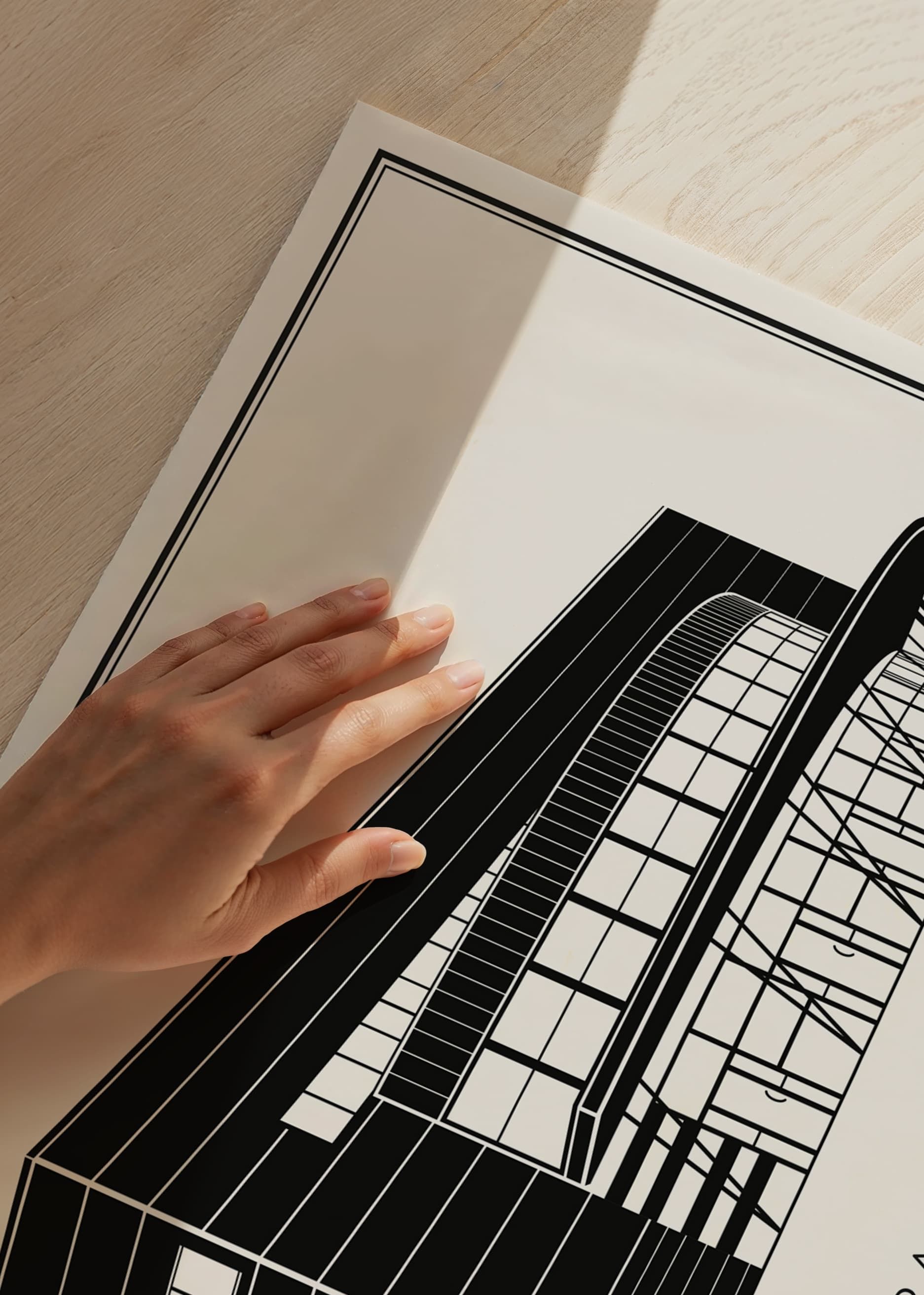 Vi trycker våra posters på 200 grams matt papper av högsta kvalitet från det franska pappersbruket Clairefontaine. Pappret är miljöcertifierat FSC och produktionen Svanen/EU Ecolabel-märkt.