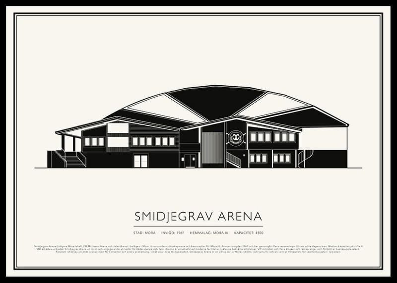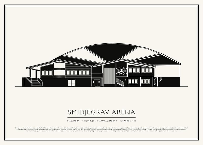 Smidjegrav Arena (tidigare Mora Ishall, FM Mattsson Arena och Jalas Arena), belägen i Mora, är en modern ishockeyarena och hemmaplan för Mora IK. Arenan invigdes 1967 och har genomgått flera renoveringar för att möta dagens krav. Med en kapacitet på cirka 4 500 åskådare erbjuder Smidjegrav Arena en intim och engagerande atmosfär för både spelare och fans. Arenan är utrustad med moderna faciliteter, inklusive bekväma sittplatser, VIP-områden och flera kiosker och restauranger som förbättrar besöksupplevelsen. Förutom ishockey används arenan även för konserter och andra evenemang, vilket visar dess mångsidighet. Smidjegrav Arena är en viktig del av Moras idrotts- och kulturliv och en central mötesplats för sportentusiaster i regionen.
