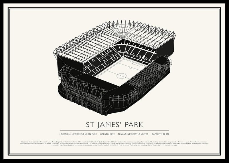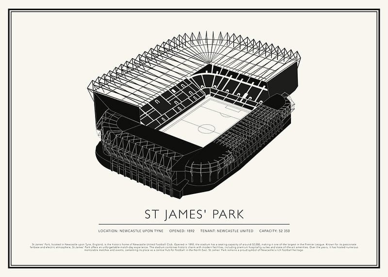 St James' Park, som ligger i Newcastle upon Tyne, England, är Newcastle United Football Clubs historiska hem. Stadion öppnades 1892 och har en kapacitet på cirka 52 000 sittplatser, vilket gör den till en av de största i Premier League. St James' Park är känd för sin passionerade fanbase och elektriska atmosfär och erbjuder en oförglömlig matchdagsupplevelse. Stadion kombinerar historisk charm med moderna faciliteter, inklusive förstklassiga gästfrihetssviter och toppmoderna bekvämligheter. Under åren har det varit värd för många minnesvärda matcher och evenemang, vilket befäster sin plats som en central knutpunkt för fotboll i nordöstra delen av landet. St James' Park är fortfarande en stolt symbol för Newcastles rika fotbollsarv.