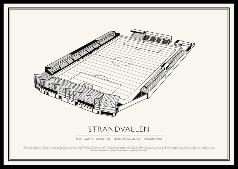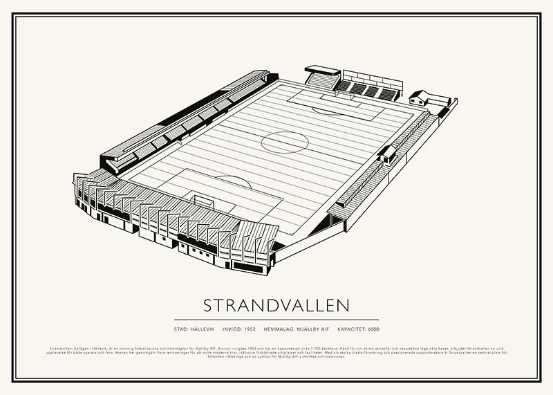 Strandvallen, belägen i Hällevik, är en charmig fotbollsarena och hemmaplan för Mjällby AIF. Arenan invigdes 1953 och har en kapacitet på cirka 7 000 åskådare. Känd för sin intima atmosfär och natursköna läge nära havet, erbjuder Strandvallen en unik upplevelse för både spelare och fans. Arenan har genomgått flera renoveringar för att möta moderna krav, inklusive förbättrade sittplatser och faciliteter. Med sin starka lokala förankring och passionerade supporterskara är Strandvallen en central plats för fotbollen i Blekinge och en symbol för Mjällby AIF:s stolthet och traditioner.