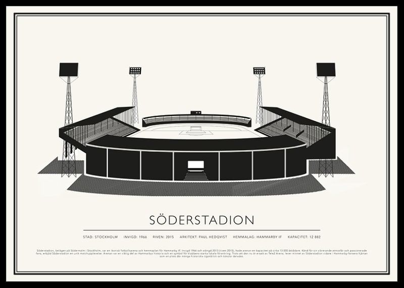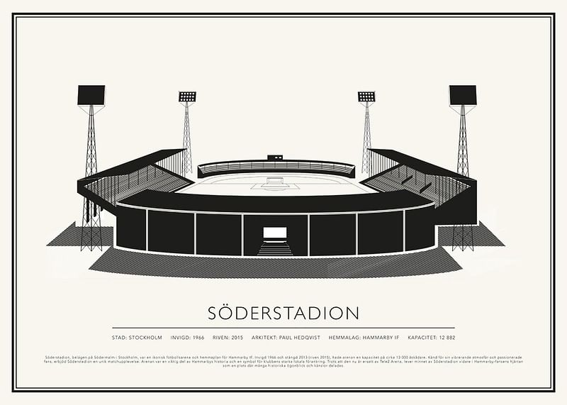 Söderstadion, belägen på Södermalm i Stockholm, var en ikonisk fotbollsarena och hemmaplan för Hammarby IF. Invigd 1966 och stängd 2013 (riven 2015), hade arenan en kapacitet på cirka 13 000 åskådare. Känd för sin vibrerande atmosfär och passionerade fans, erbjöd Söderstadion en unik matchupplevelse. Arenan var en viktig del av Hammarbys historia och en symbol för klubbens starka lokala förankring. Trots att den nu är ersatt av Tele2 Arena, lever minnet av Söderstadion vidare i Hammarby-fansens hjärtan som en plats där många historiska ögonblick och känslor delades.