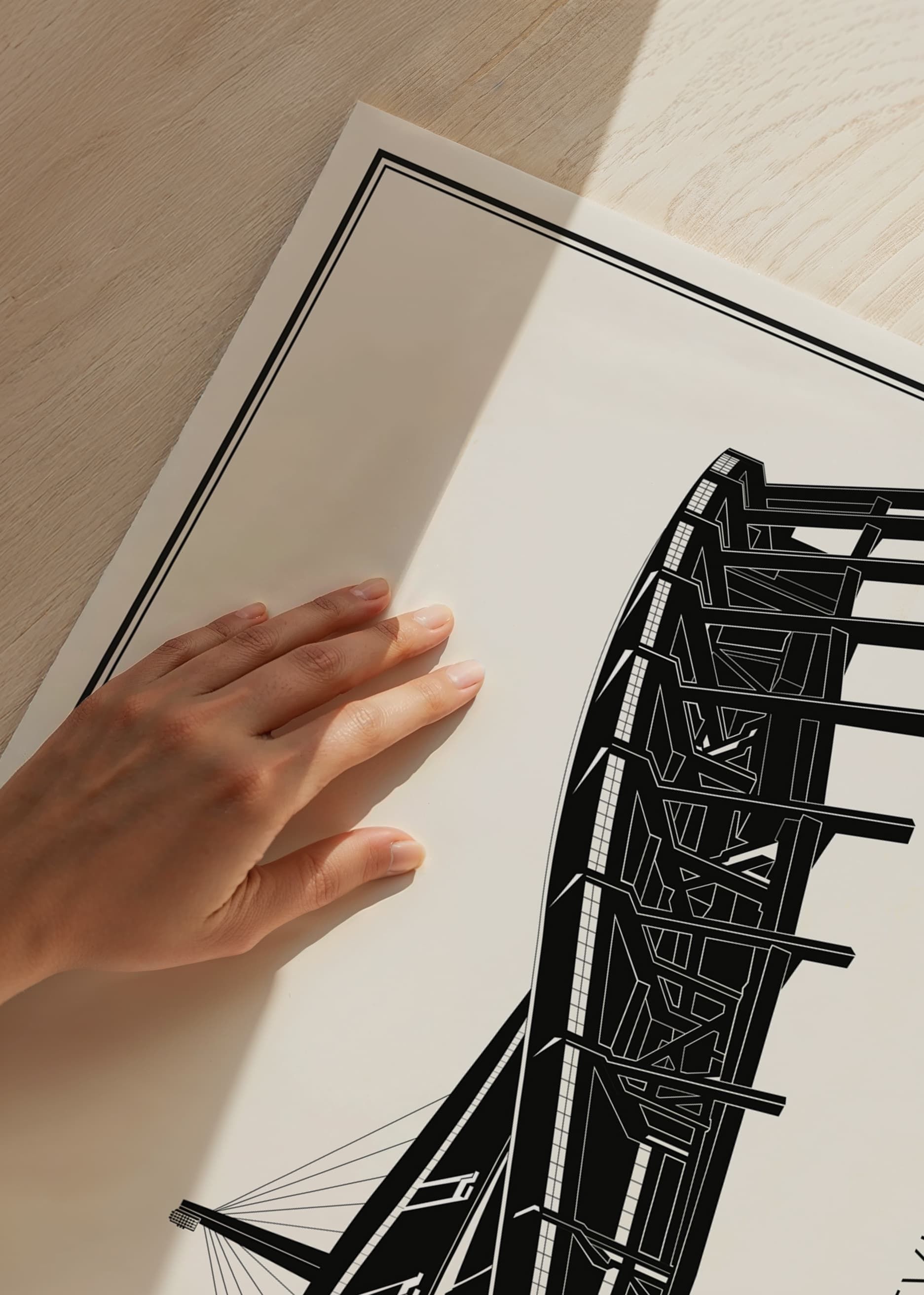 Vi trycker våra posters på 200 grams matt papper av högsta kvalitet från det franska pappersbruket Clairefontaine. Pappret är miljöcertifierat FSC och produktionen Svanen/EU Ecolabel-märkt.