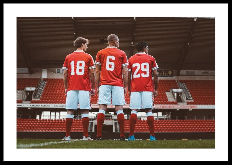 För att fira Allsvenskans 100-årsjubileum spelade Kalmar FF i hemmamatchen mot Malmö FF den 24 augusti 2024 i ett matchställ inspirerat av dräkten från den minnesvärda säsongen 1977. Det var en säsong där Kalmar FF säkrade en imponerande tredjeplats i Allsvenskan och erövrade det lilla silvret. Fotografierna av detta ikoniska matchställ fångar inte bara nostalgin från 1977 utan också stoltheten och traditionen som Kalmar FF bär med sig in i varje match. Detaljerna i designen är en påminnelse om klubbens rika historia och dess långvariga engagemang för fotbollen.