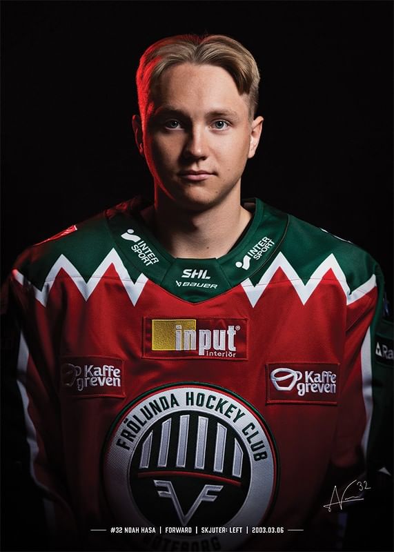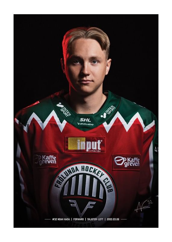 Stilren poster från kategorin Frölunda HC med motiv Noah Hasa #32 Frölunda HC 2024/2025