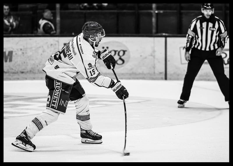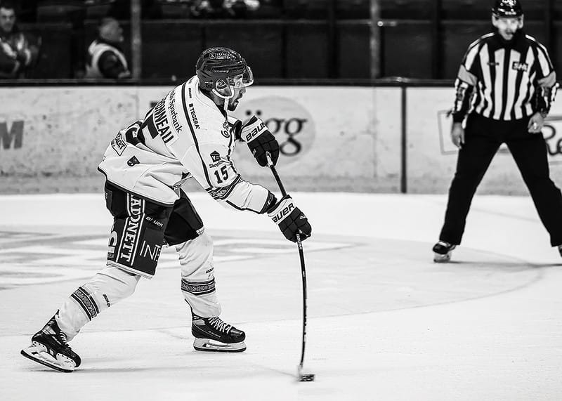 Leksands Max Veronneau gör avgörande mål på straff under ishockeymatchen i SHL mellan Linköping och Leksand den 25 november 2021 i Linköping.