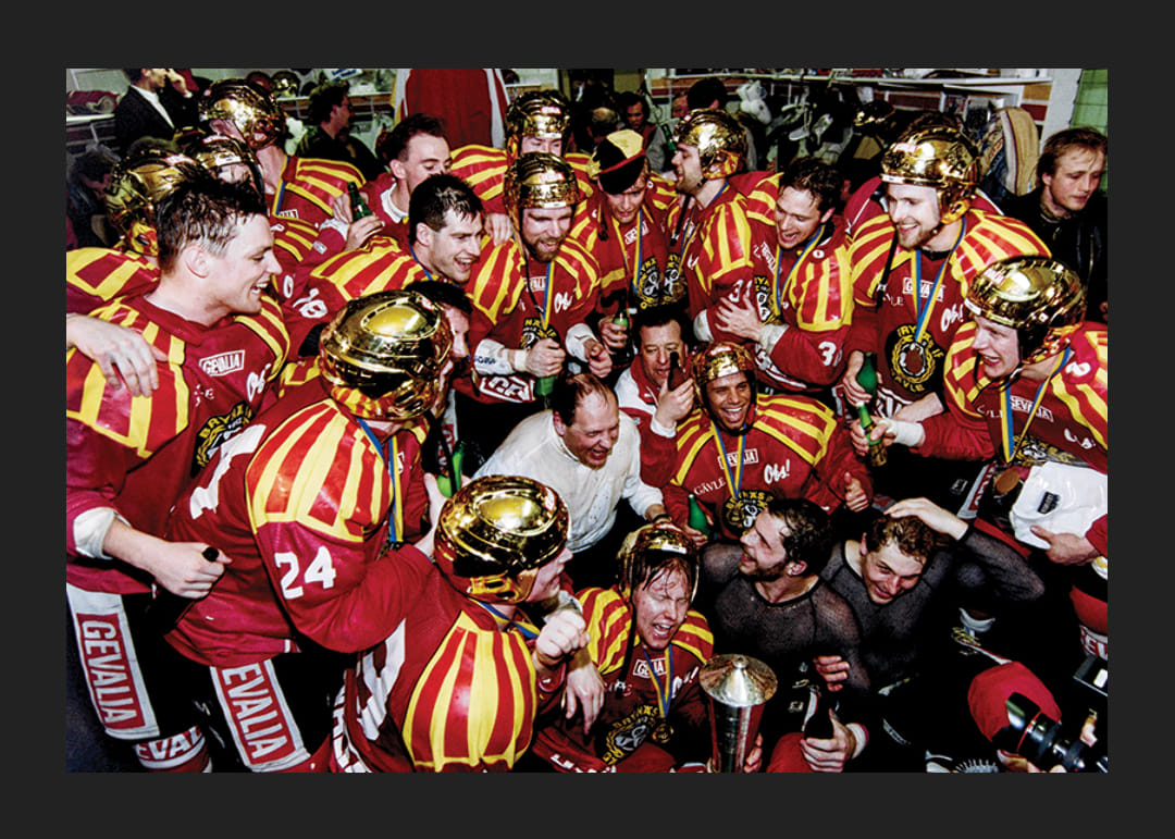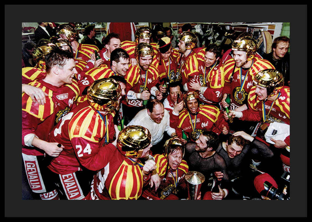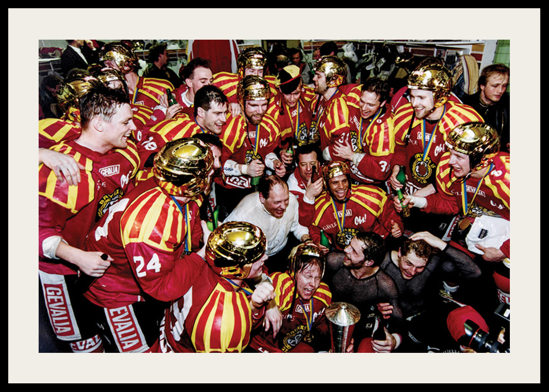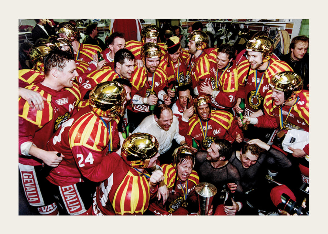 Ishockey, Elitserien, SM-Final, Brynäs - Luleå, 3-1: Jubel i brynäs omklädningsrum efter segern.