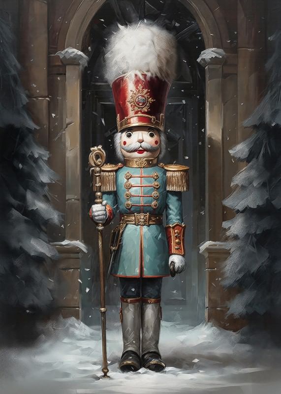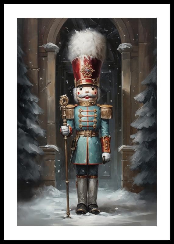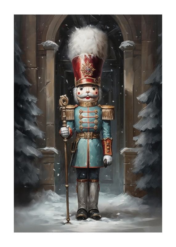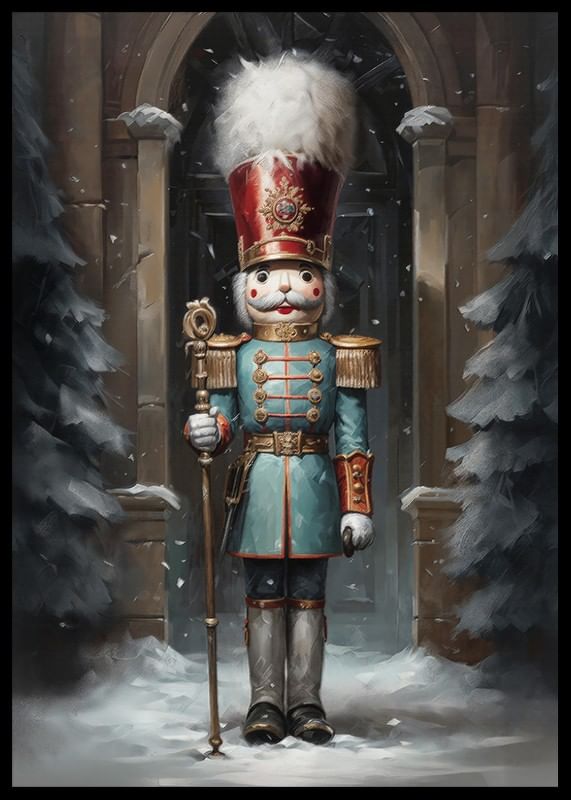 Ge ditt hem en klassisk julstämning med denna eleganta poster föreställande en ståtliga nötknäppare, klädd i imponerande uniform och omgiven av en vintrig atmosfär. Denna ikoniska figur står som en beskyddare av högtiden och påminner om julens traditioner och magi. Perfekt för att skapa en känsla av historia och festlighet, blir denna poster ett stämningsfullt tillskott till din juldekoration.