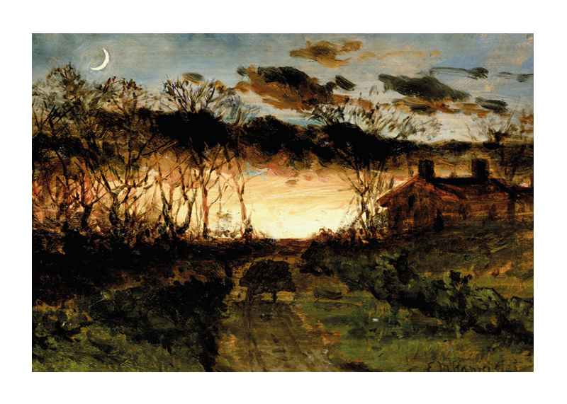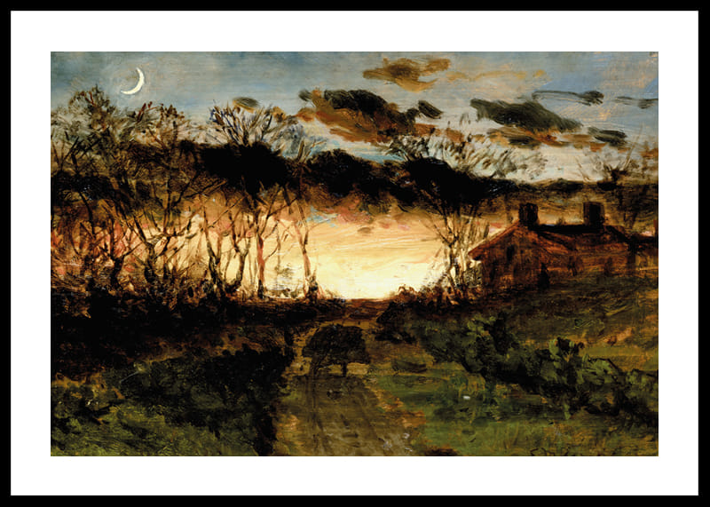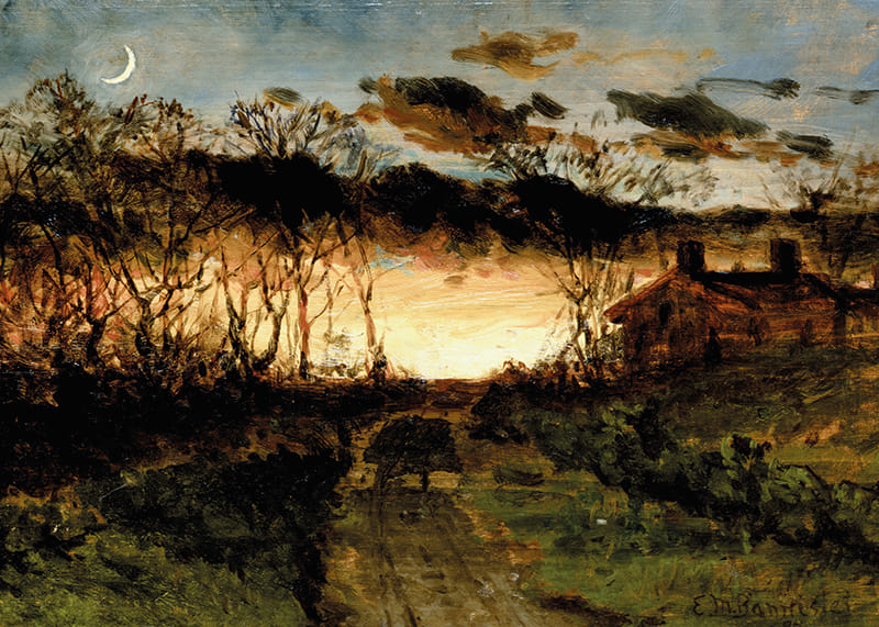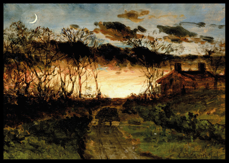 Sunset With Quarter Moon And Farmhouse By Edward Mitchell Bannister