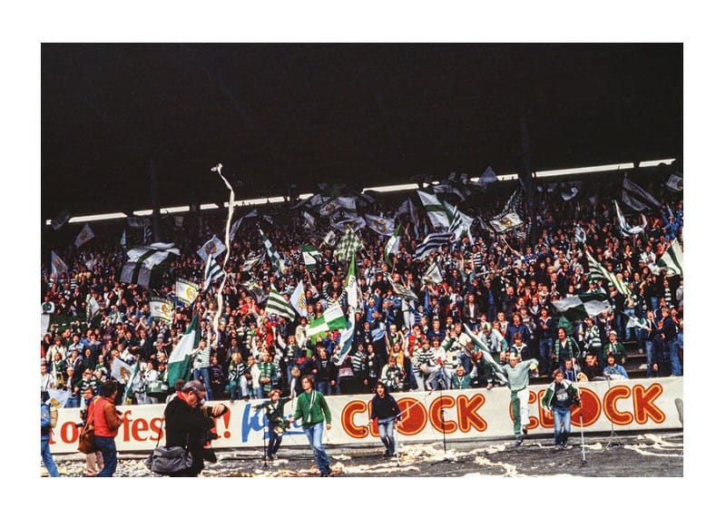 1982 SM-final, Fotboll, Hammarby - IFK Göteborg.. Hammarbyklacken på Söderstadion.