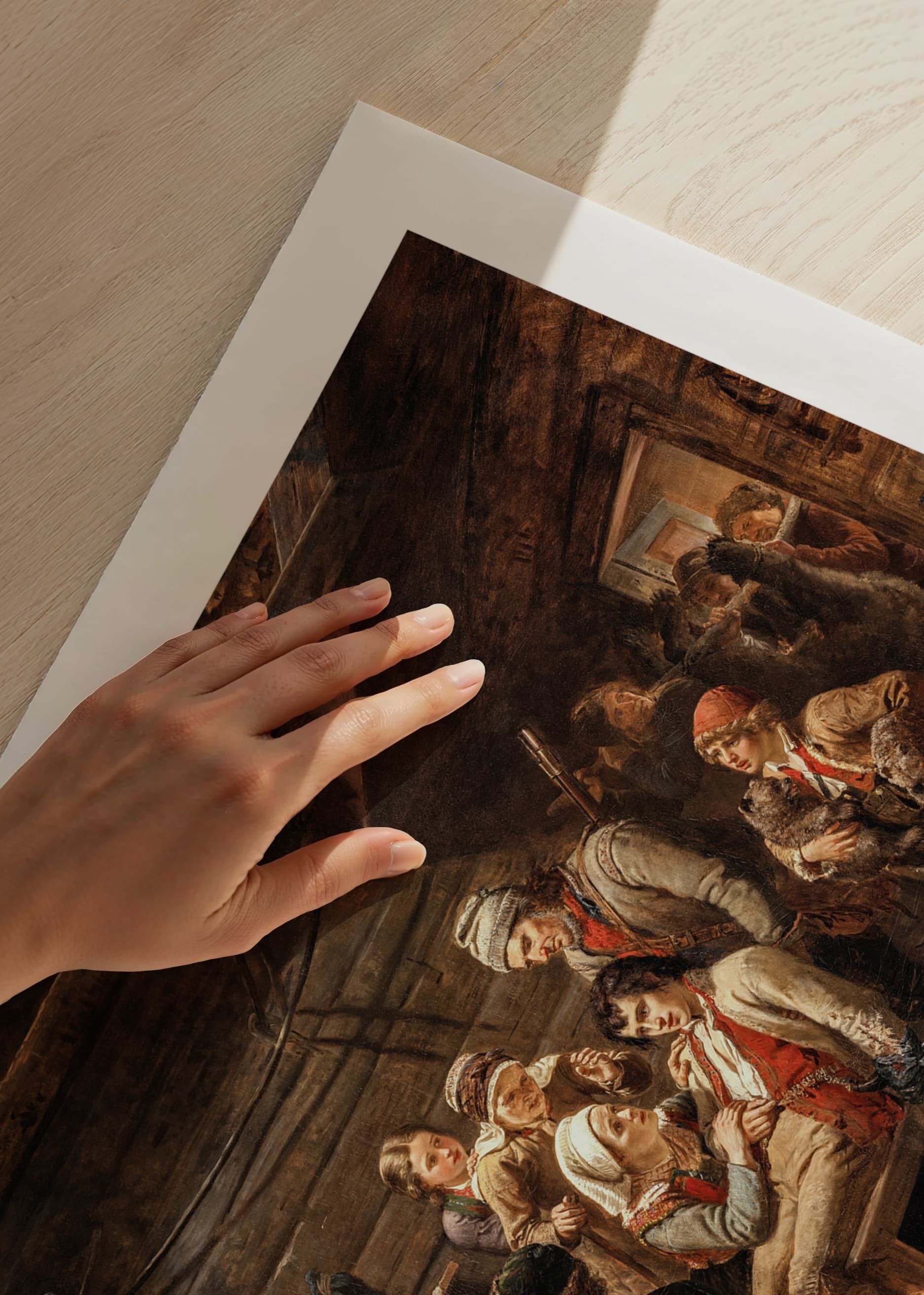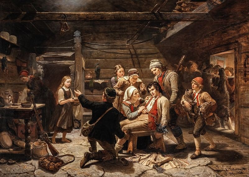 Adolph Tidemand (1814–1876) var en norsk konstnär känd för sina realistiska och känslosamma skildringar av norskt folkliv och traditioner. Hans verk, som ofta avbildar bondesamhället och lokala seder, har blivit ikoniska i Norges kulturarv. Tidemand anses vara en av Norges främsta nationella målare under 1800-talet.