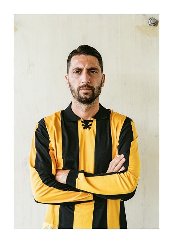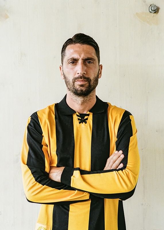 Hammarbys allsvenska jubileumsställ är en kopia av det ställ som klubben spelade i för 100 år sedan när den första Allsvenskan sparkades igång. År 1915 när fotbollssektionen bildades var matchstället grönt och vitt men 1918 uppgår Johanneshovs IF i Hammarby IF och tar med sig färgerna svart och gult, färger som i sin tur har hämtats från Eriksdals IF som uppgått i Johanneshov. I 60 år spelade Hammarby IF i dessa färger på huvuddräkten innan man våren 1978 återgick till klubbens ursprungliga gröna och vita färger i samband med premiären borta mot Kalmar FF.