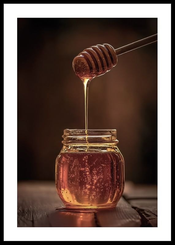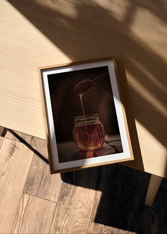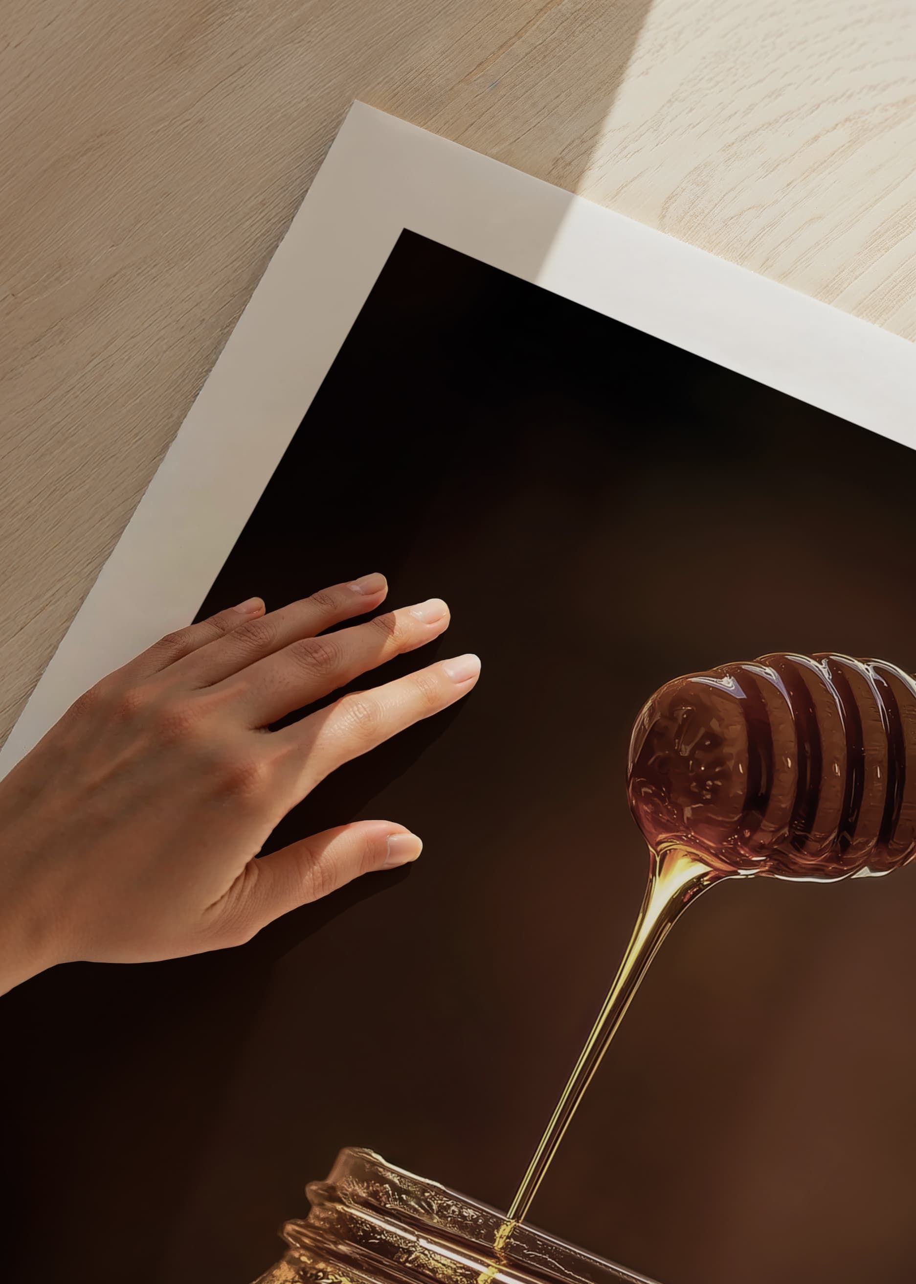 Lyft ditt hem med denna vackra poster som fångar honungens gyllene magi i en elegant och smakfull design. Perfekt för att skapa en varm och inbjudande atmosfär i köket eller matsalen.