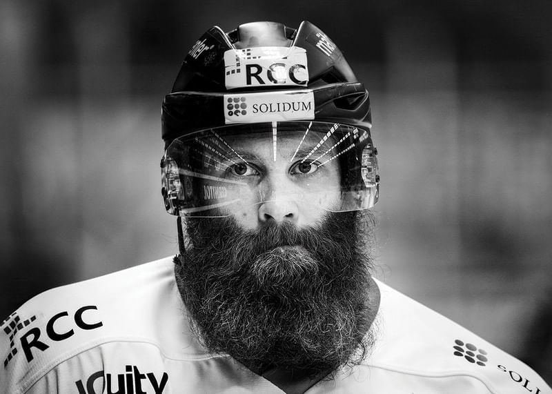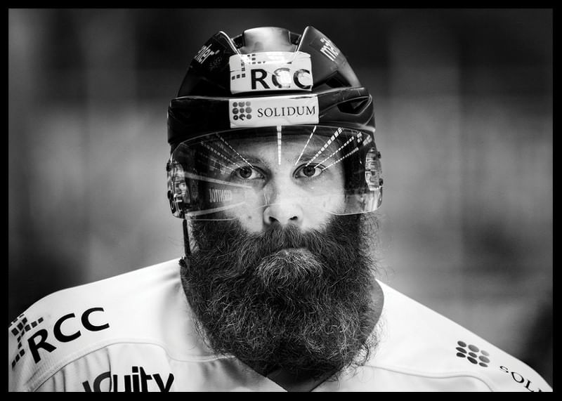 Ishockey, Kvalserien, Rögle - Örebro: Emil Kåberg, Örebro, med ett gediget skägg.