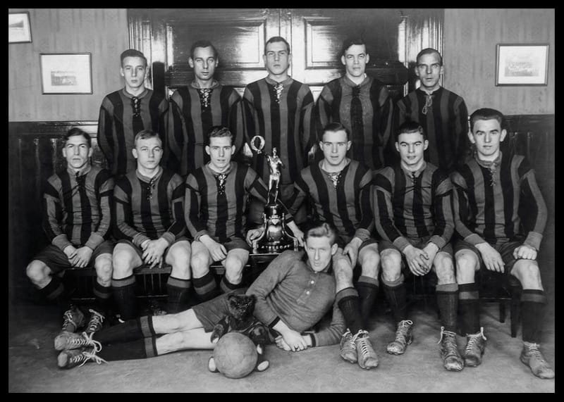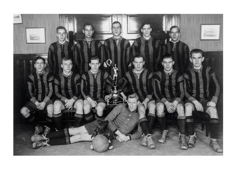 Stilren poster från kategorin Hammarby IF med motiv Tidig Lagbild Inomhus Med Pokal Hammarby IF