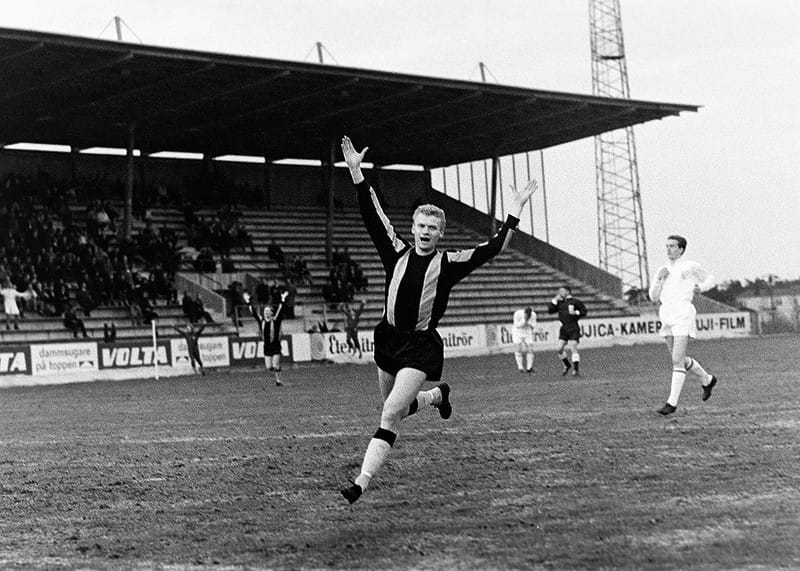 19 Maj 1967, Fotboll, Allsvenskan, Hammarby - Göteborg, 2-2: Hammarbys Tom Turesson jublar efter mål.