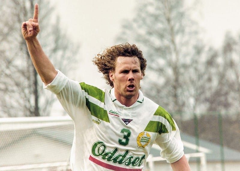 10 april 1994, Fotboll, Allsvenskan, Trelleborg - Hammarby: Hans Eskilsson, Hammarby jublar efter 1-1.