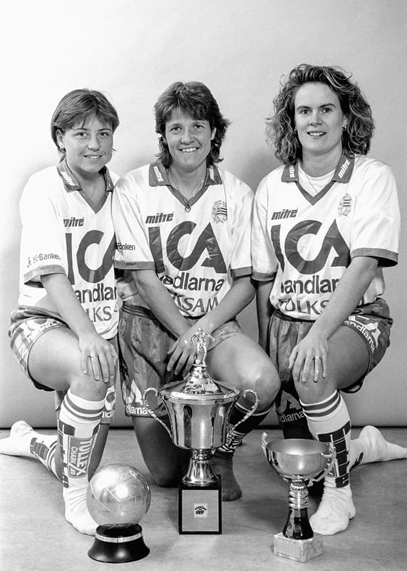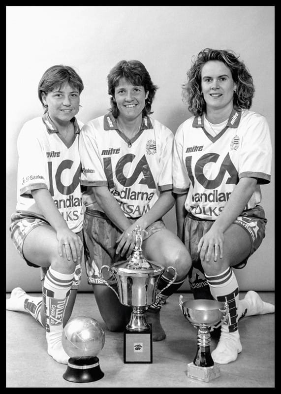 23 mars 1993 Fotboll, Damallsvenskan, Hammarby, porträtt: Pia Sundhage i mitten.