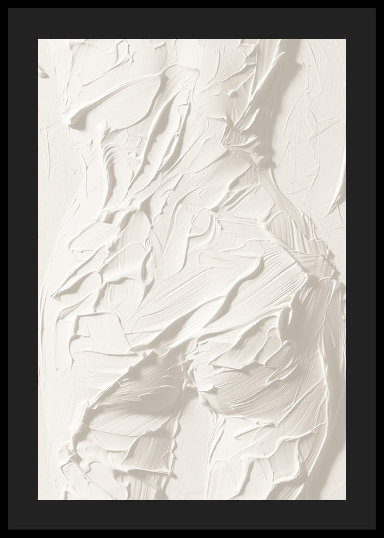 En elegant poster som framhäver kroppens naturliga former genom kraftfulla, texturerade penseldrag i en mjuk, monokrom palett. Den abstrakta stilen skapar en känsla av rörelse och djup, vilket ger en sofistikerad och modern touch till ditt hem.