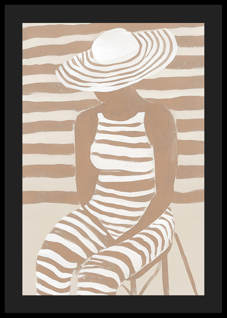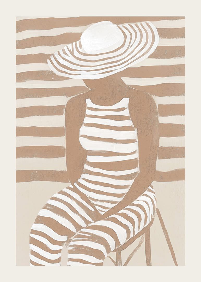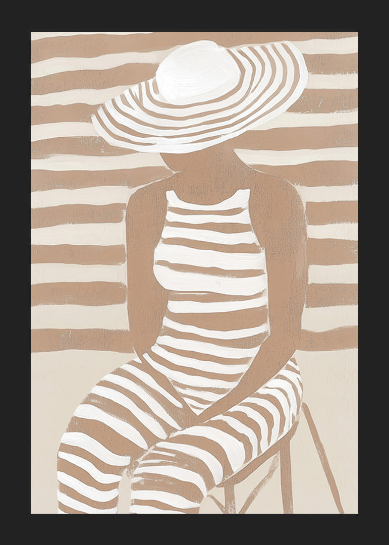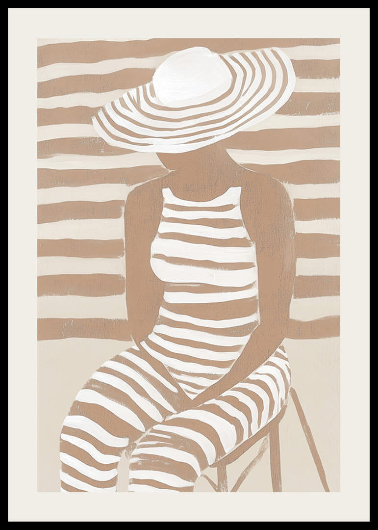 Utforska modern elegans med denna unika poster som fångar essensen av stil och subtil skönhet. Mjuka, jordtonade ränder sveper över figuren, sammanflätade med bakgrunden på ett sätt som förenar konst och harmoni.