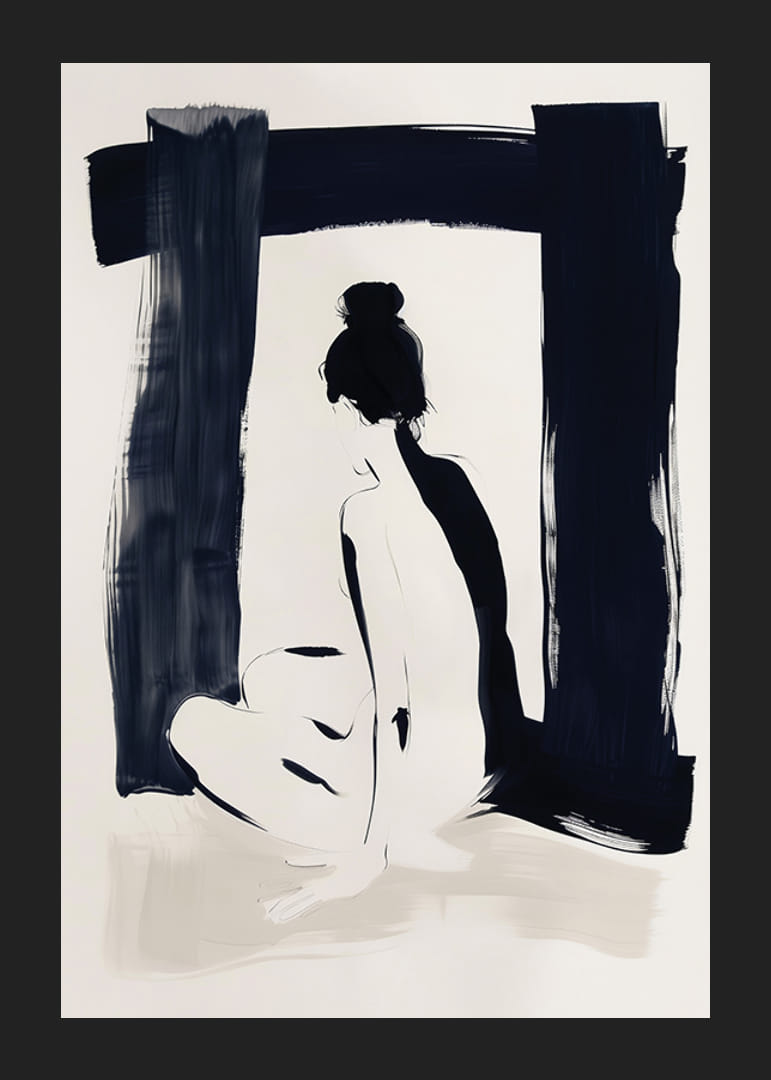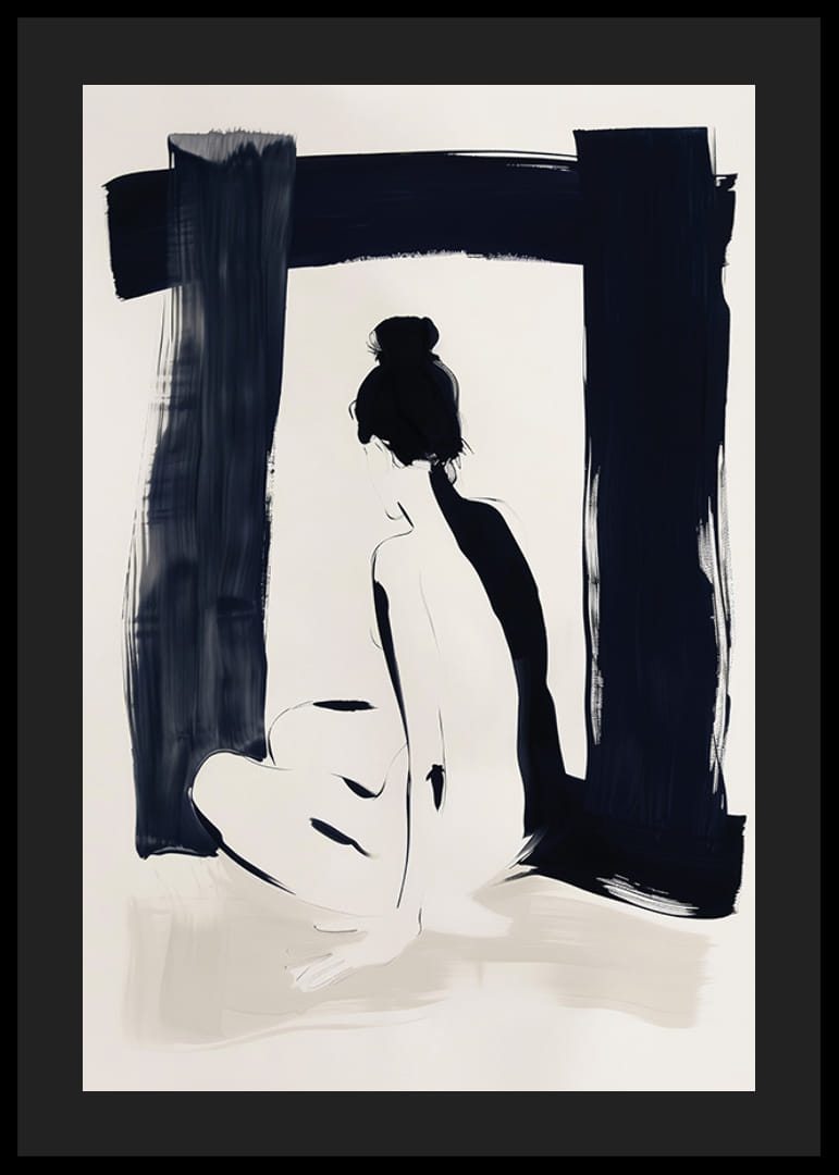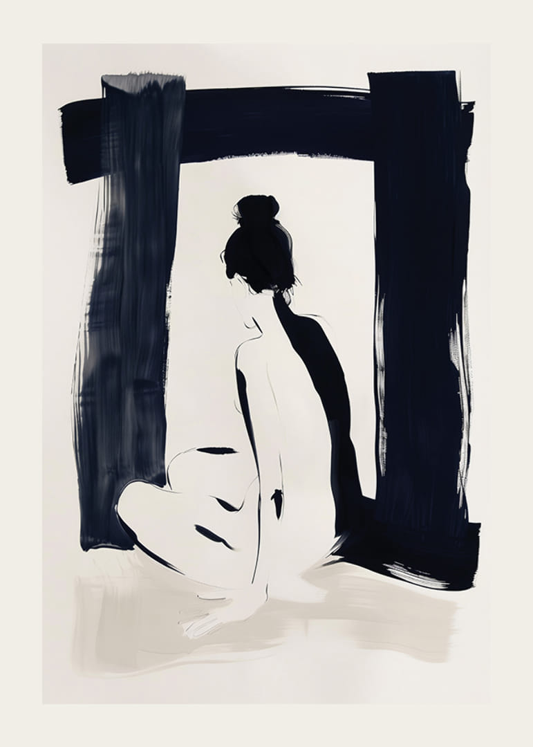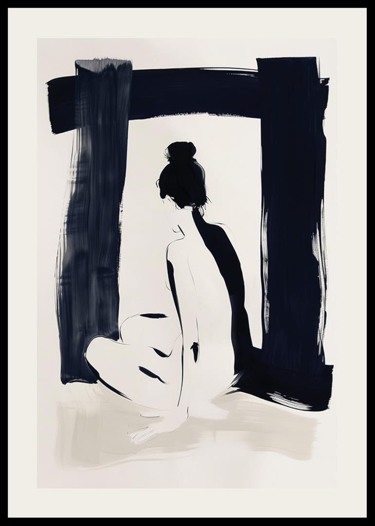 Denna poster fångar en elegant silhuett i mjuka kontraster av svart och vitt, vilket skapar en känsla av stillhet och introspektion. Dess enkla men kraftfulla estetik ger rummet en sofistikerad och lugn atmosfär.
