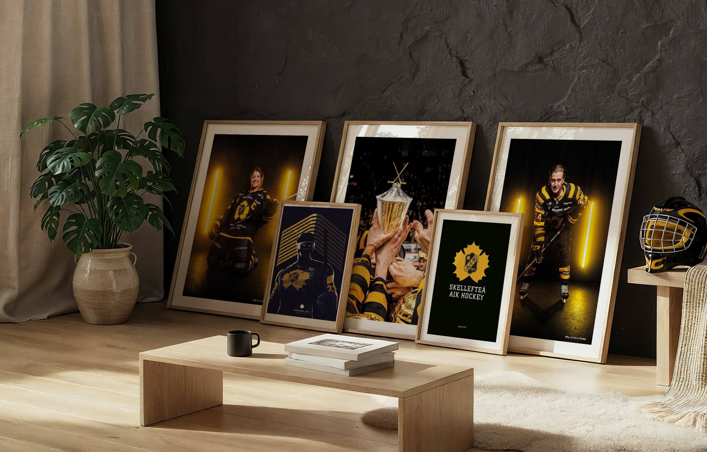 Posters med Skellefteå AIK:s logotyp, illustrationer och övrigt. Allt överskott vid försäljning av posters i denna kollektion tillfaller Skellefteå AIK.