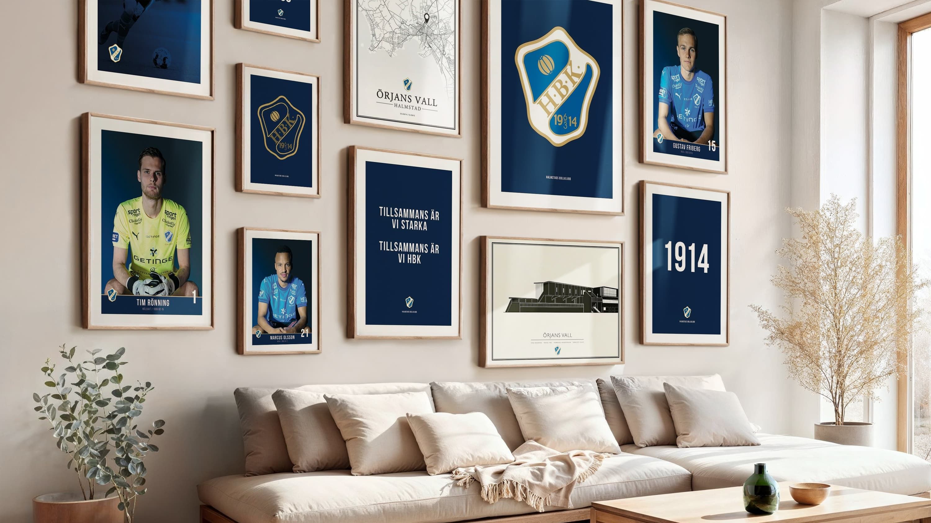Posters med HBK:s logotyp, illustrationer och övrigt. Allt överskott vid försäljning av posters i denna kollektion tillfaller Halmstads BK.