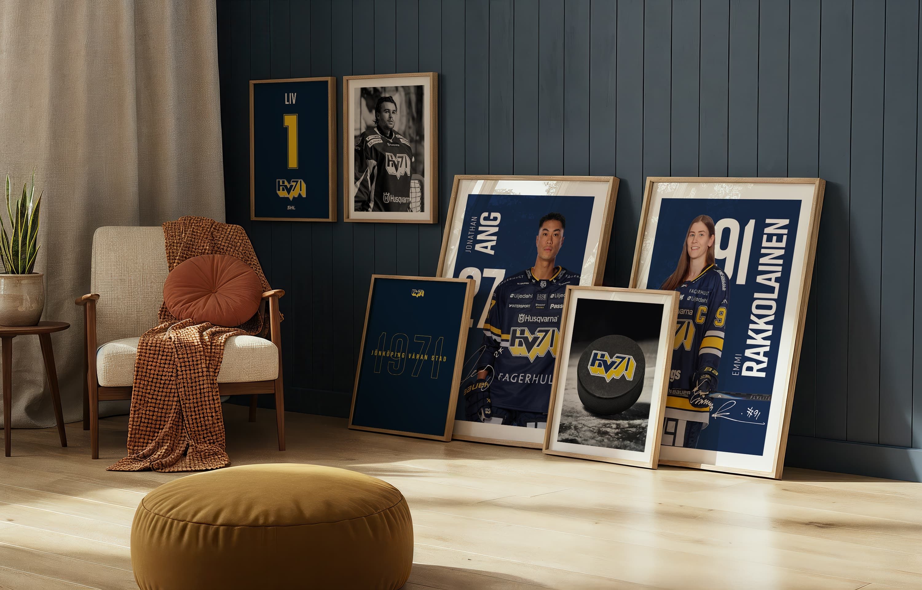 HV71 A-lagstrupp herrar 2025/2026. Allt överskott vid försäljning av posters i denna kollektion tillfaller HV71.