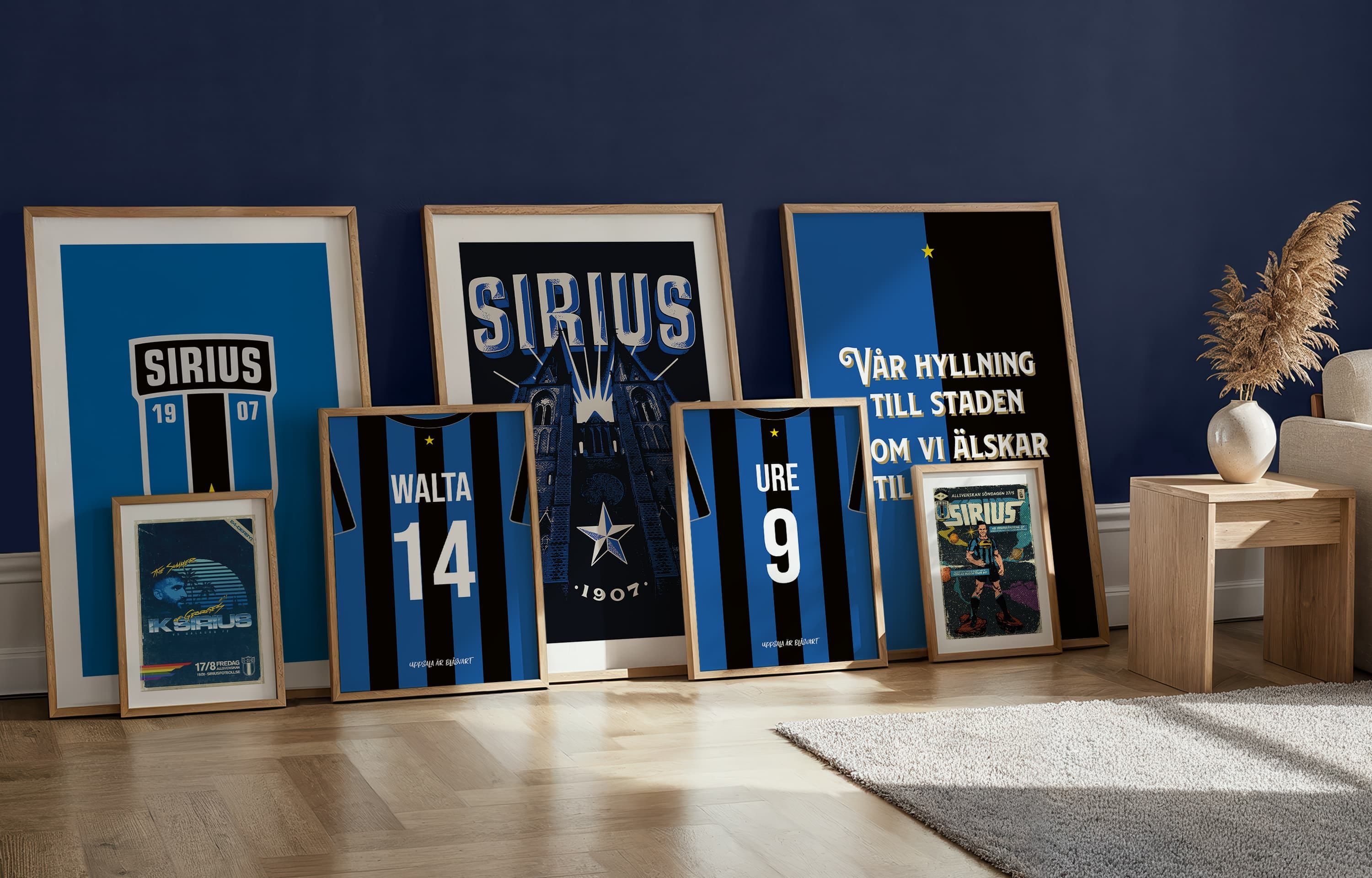 Spelartröjor från Sirius Fotboll. Allt överskott vid försäljning av posters i denna kollektion tillfaller Sirius Fotboll.