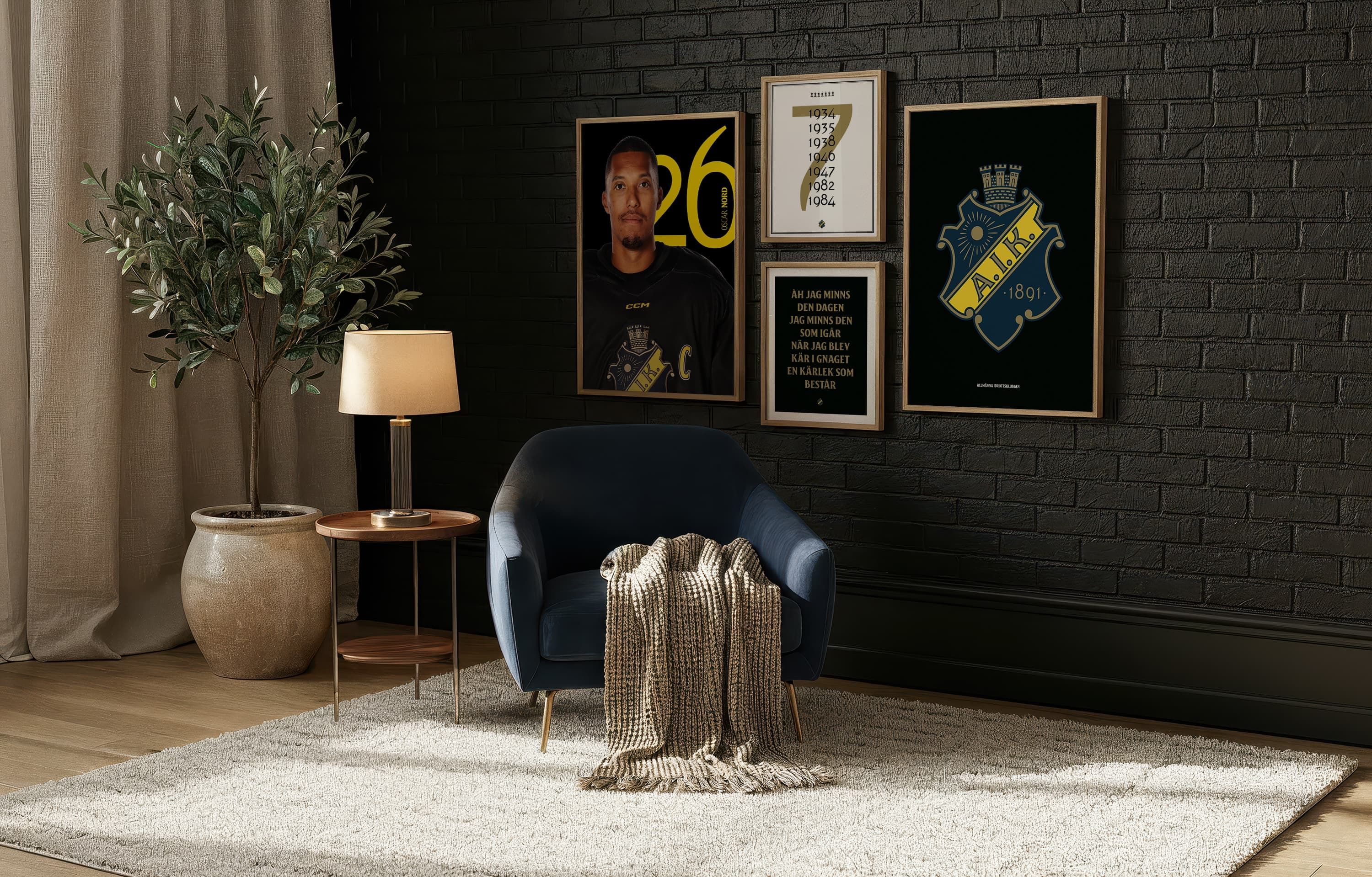 I samarbete med AIK Hockey presenterar Gallerix en unik kollektion posters. Allt överskott vid försäljning av posters i denna kollektion tillfaller AIK.
