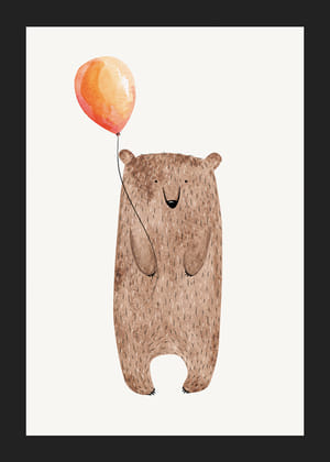 Tavelväggen utstrålar lekfullhet och charm med sina mjuka färger och fantasifulla motiv, där varje poster bidrar till en känsla av glädje och nyfikenhet. De harmoniska elementen kombineras för att ge barnrummet en livlig och inbjudande atmosfär, perfekt för att förnya och liva upp. En söt björn tillsammans med ett leende päron skapar glädje i barnrummet.
