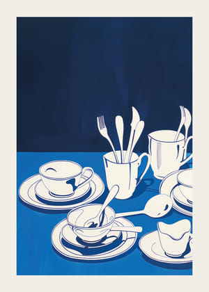 Dessa posters fångar blicken med sina djärva blå och vita kontraster som skapar en stämning av lugn och elegans. Med lekfulla motiv av porslin och katter i ett schackrutigt mönster, tillför den en underfundig charm till rummet. Den rena och moderna stilen gör att dessa posters smälter in perfekt i både moderna och klassiska miljöer, vilket skapar en konstnärlig och inbjudande atmosfär.