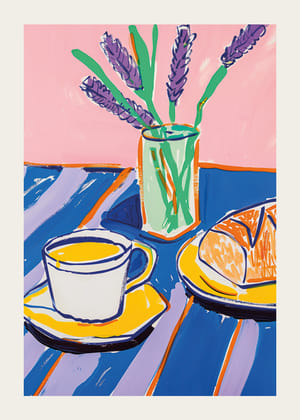 Tavelväggen öppnar upp ett rum med sin vibrerande explosion av färger där pasteller möter geometriska former. De kärleksfullt skildrade motiven av frukostupplevelser och levande blommor skapar en harmonisk kombination av lugn och energi. Perfekt för att införa en känsla av frid och skönhet i vilket rum som helst, bjuder dessa posters in till att njuta av de små ögonblicken i livet.