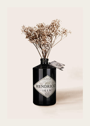 Tavelväggen bjuder in till en värld av lugn och skönhet med sina vackert komponerade posters som samspelar i perfekt harmoni. De subtila färgtonerna av guld och beige skapar en varm och inbjudande atmosfär, medan de organiska formerna och blomsterinslagen väcker en känsla av tidlös elegans. Denna konstnärliga komposition med Hendricks gin i fokus lyfter rummet till nya höjder av stil och inspiration.