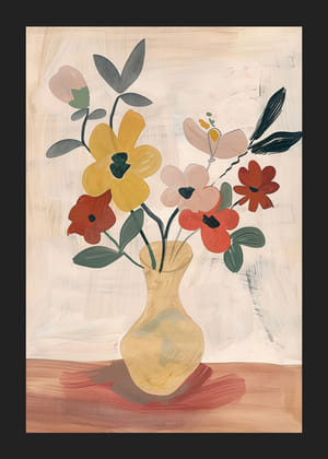 Dessa posters öppnar upp rummet med sina mjuka färgtoner och lugna motiv, där kontrasten mellan en ensam figur och en blomsterbukett skapar en subtil dynamik. Postersens val av ljusa neutrala färger bidrar till en atmosfär av stillhet och elegans. Denna kombination lyfter ett vardagsrum med sin diskreta skönhet och känsla av noggrant utvald konst.